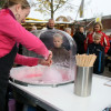 Compleet met alles wat er nodig is: suikerspinnenkraam, haspels, suikerspinsuiker, suikerspinstokjes en een piraat die de suikerspinnen maakt en (onbeperkt) uitdeelt.